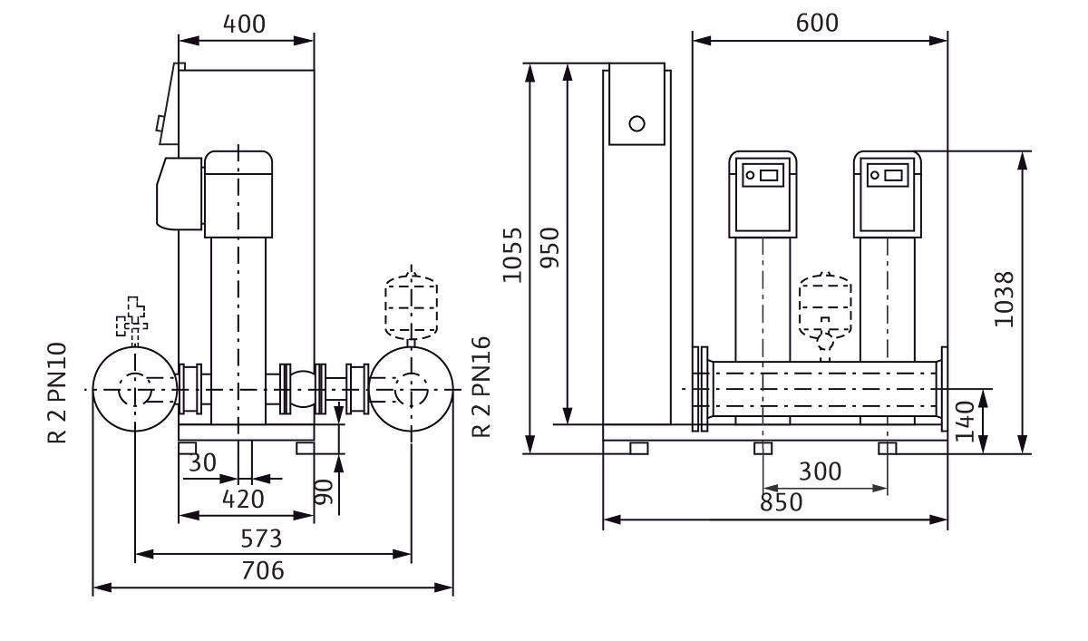 Wilo Mehrpumpenanlage SiBoost2.0 Smart 2HELIX VE608, R2 (PN 10), R2 (PN 16), 3.0kW, 3.43kW W579739