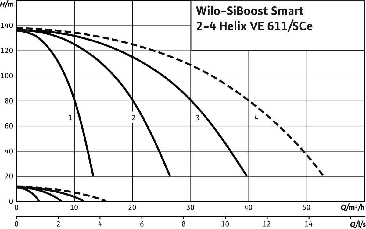 Anschlussfertige Wasserversorgungsanlage mit 2-4 parallel geschalteten, vertikal angeordneten, Edelstahl-Hochdruck-Kreiselpumpen, normalsaugend, der Baureihe Helix VE, mit integriertem luftgekühlten Frequenzumrichter, mit Smart Controller, zum Einsatz für vollautomatische Wasserversorgung und Druckerhöhung im Zulaufbetrieb aus dem öffentlichen Wassernetz oder einem Tank für private, kommerzielle, industrielle und kommunale Anwendungen (z. B. Wohngebäude, Büro, Verwaltungsgebäude, Hotels, Krankenhäuser, Handwerk, Industrie, Wasserversorgungsunternehmen), Reservepumpe gemäß DIN 1988 und DIN EN 806 enthalten, zugelassene Fördermedien sind normalerweise Wasser, die die verwendeten Werkstoffe nicht angreifen (weder chemisch noch mechanisch) und keine abrasiven oder langfaserigen Bestandteile aufweisen wie Trinkwasser, Kühlwasser, Prozesswasser, Löschwasser (außer für Feuerlöschanlagen gemäß DIN 14462 und mit Genehmigung der örtlichen Brandschutzbehörden), mit Einbau- und Betriebsanleitung, integrierter Überlastschutz, Trockenlaufschutz und Wassermangelsicherung, mit automatischer Abschaltung