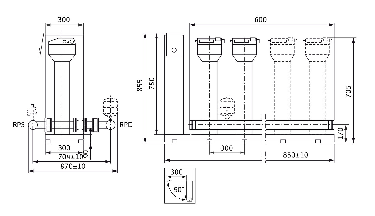 anschlussfertige Wasserversorgungsanlage mit 2-4 parallel geschalteten, vertikal angeordneten, normalsaugenden Edelstahl-Hochdruckkreiselpumpen der Baureihe MVISE in Nassläuferausführung, integrierte wassergekühlte Frequenzumrichter, mit Smart Controller, zum Einsatz für vollautomatische Wasserversorgung und Druckerhöhung im Zulaufbetrieb (entweder aus öffentlichem Wassernetz oder Tank in Höhe von mind. 0,5 m über der Pumpe), für private, gewerbliche, industrielle und kommunale Anwendungen (z. B. Wohngebäude, Büro, Verwaltungsgebäude, Hotels, Krankenhäuser, Handwerk, Industrie, Wasserversorgungsunternehmen), Reservepumpe ist gemäß DIN 1988 und DIN EN 806 enthalten, zugelassene Fördermedien sind normalerweise Wasser, die die verwendeten Werkstoffe nicht angreifen (weder chemisch noch mechanisch) und keine abrasiven oder langfaserigen Bestandteile aufweisen wie Trinkwasser, Kühlwasser, Prozesswasser, Löschwasser (außer für Feuerlöschanlagen gemäß DIN 14462 und mit Genehmigung der örtlichen Brandschutzbehörden), mit Einbau- und Betriebsanleitung, wartungsfreie Pumpen-Bauform ohne Gleitringdichtungen, verschiedene Schutzfunktionen einschließlich Überlastschutz, Trockenlaufschutz und automatischer Abschaltung