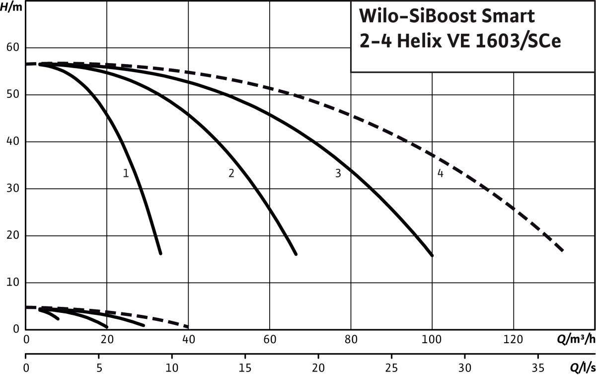 Anschlussfertige Wasserversorgungsanlage mit 2-4 parallel geschalteten, vertikal angeordneten, Edelstahl-Hochdruck-Kreiselpumpen, normalsaugend, der Baureihe Helix VE, mit integriertem luftgekühlten Frequenzumrichter, mit Smart Controller, zum Einsatz für vollautomatische Wasserversorgung und Druckerhöhung im Zulaufbetrieb aus dem öffentlichen Wassernetz oder einem Tank für private, kommerzielle, industrielle und kommunale Anwendungen (z. B. Wohngebäude, Büro, Verwaltungsgebäude, Hotels, Krankenhäuser, Handwerk, Industrie, Wasserversorgungsunternehmen), Reservepumpe gemäß DIN 1988 und DIN EN 806 enthalten, zugelassene Fördermedien sind normalerweise Wasser, die die verwendeten Werkstoffe nicht angreifen (weder chemisch noch mechanisch) und keine abrasiven oder langfaserigen Bestandteile aufweisen wie Trinkwasser, Kühlwasser, Prozesswasser, Löschwasser (außer für Feuerlöschanlagen gemäß DIN 14462 und mit Genehmigung der örtlichen Brandschutzbehörden), mit Einbau- und Betriebsanleitung, integrierter Überlastschutz, Trockenlaufschutz und Wassermangelsicherung, mit automatischer Abschaltung