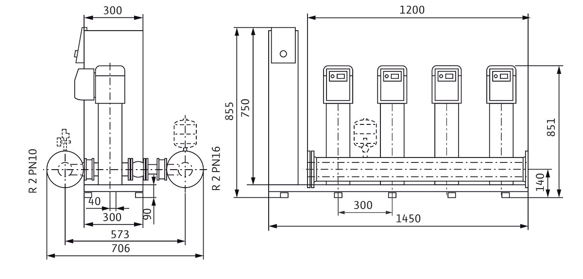 Anschlussfertige Wasserversorgungsanlage mit 2-4 parallel geschalteten, vertikal angeordneten, Edelstahl-Hochdruck-Kreiselpumpen, normalsaugend, der Baureihe Helix VE, mit integriertem luftgekühlten Frequenzumrichter, mit Smart Controller, zum Einsatz für vollautomatische Wasserversorgung und Druckerhöhung im Zulaufbetrieb aus dem öffentlichen Wassernetz oder einem Tank für private, kommerzielle, industrielle und kommunale Anwendungen (z. B. Wohngebäude, Büro, Verwaltungsgebäude, Hotels, Krankenhäuser, Handwerk, Industrie, Wasserversorgungsunternehmen), Reservepumpe gemäß DIN 1988 und DIN EN 806 enthalten, zugelassene Fördermedien sind normalerweise Wasser, die die verwendeten Werkstoffe nicht angreifen (weder chemisch noch mechanisch) und keine abrasiven oder langfaserigen Bestandteile aufweisen wie Trinkwasser, Kühlwasser, Prozesswasser, Löschwasser (außer für Feuerlöschanlagen gemäß DIN 14462 und mit Genehmigung der örtlichen Brandschutzbehörden), mit Einbau- und Betriebsanleitung, integrierter Überlastschutz, Trockenlaufschutz und Wassermangelsicherung, mit automatischer Abschaltung