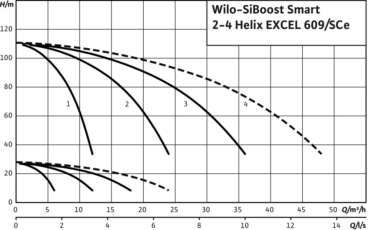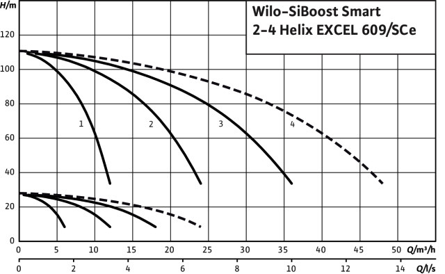 Anschlussfertige Wasserversorgungsanlage mit 2-4 parallel geschalteten/vertikal angeordneten/normalsaugenden Edelstahl-Hochdruckkreiselpumpen der Baureihen Helix EXCEL, mit integriertem EC-Motor (Energieeffizienzklasse IE5 gemäß IEC 60034-30-2) und luftgekühltem Hocheffizienz-Frequenzumrichter, geschützte Armaturen und Sensoren, mit Smart Controller, zum Einsatz für vollautomatische Wasserversorgung und Druckerhöhung im Zulaufbetrieb aus dem öffentlichen Wassernetz oder einem Tank für private/gewerbliche/industrielle und kommunale Anwendungen (z. B. Wohngebäude/Büro/Verwaltungsgebäude/Hotels/Krankenhäuser/Handwerk/Industrie/Wasserversorgungsunternehmen), Reservepumpe gemäß DIN 1988 und DIN EN 806 enthalten, zugelassene Fördermedien sind normalerweise Wasser, die die verwendeten Werkstoffe nicht angreifen (weder chemisch noch mechanisch) und keine abrasiven oder langfaserigen Bestandteile aufweisen wie Trinkwasser/Kühlwasser/Prozesswasser/Löschwasser (außer für Feuerlöschanlagen gemäß DIN 14462 und mit Genehmigung der örtlichen Brandschutzbehörden), mit Einbau- und Betriebsanleitung, mit integriertem Frequenzumrichter von 25 Hz bis maximal 60 Hz, integrierte Trockenlauferkennung mit automatischer Abschaltung über die Motor-Regelelektronik