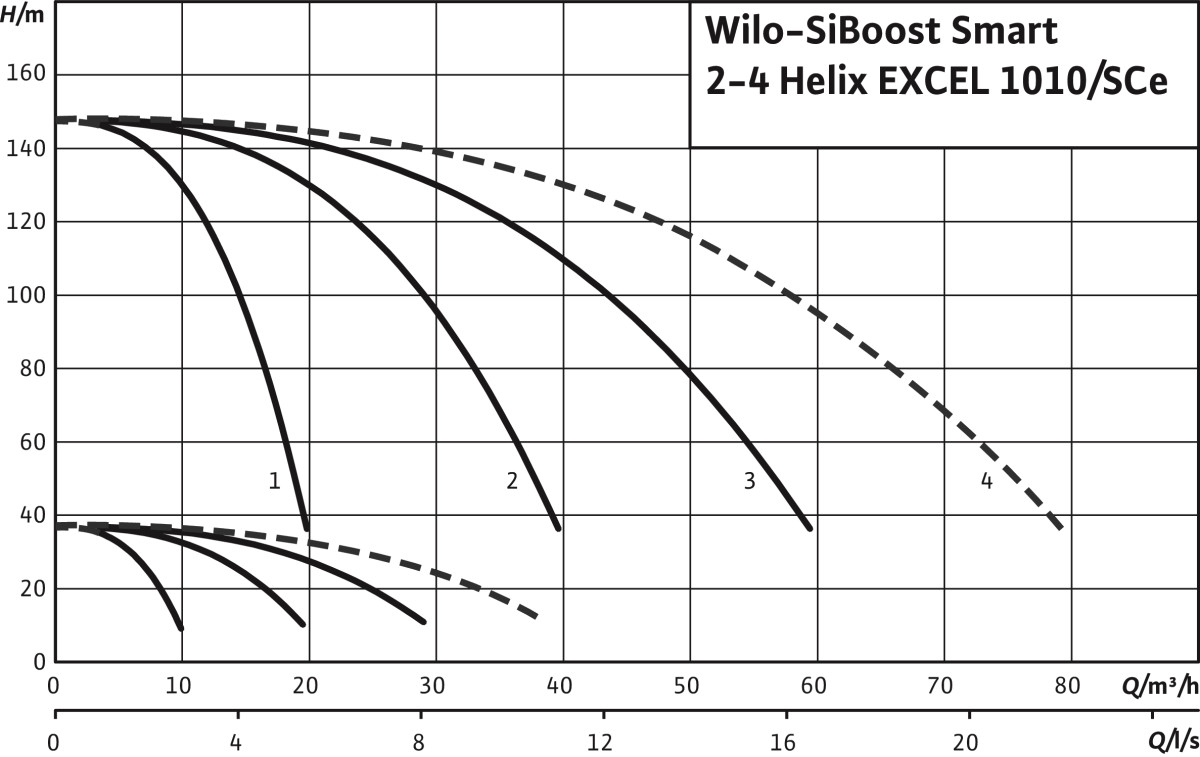 Anschlussfertige Wasserversorgungsanlage mit 2-4 parallel geschalteten/vertikal angeordneten/normalsaugenden Edelstahl-Hochdruckkreiselpumpen der Baureihen Helix EXCEL, mit integriertem EC-Motor (Energieeffizienzklasse IE5 gemäß IEC 60034-30-2) und luftgekühltem Hocheffizienz-Frequenzumrichter, geschützte Armaturen und Sensoren, mit Smart Controller, zum Einsatz für vollautomatische Wasserversorgung und Druckerhöhung im Zulaufbetrieb aus dem öffentlichen Wassernetz oder einem Tank für private/gewerbliche/industrielle und kommunale Anwendungen (z. B. Wohngebäude/Büro/Verwaltungsgebäude/Hotels/Krankenhäuser/Handwerk/Industrie/Wasserversorgungsunternehmen), Reservepumpe gemäß DIN 1988 und DIN EN 806 enthalten, zugelassene Fördermedien sind normalerweise Wasser, die die verwendeten Werkstoffe nicht angreifen (weder chemisch noch mechanisch) und keine abrasiven oder langfaserigen Bestandteile aufweisen wie Trinkwasser/Kühlwasser/Prozesswasser/Löschwasser (außer für Feuerlöschanlagen gemäß DIN 14462 und mit Genehmigung der örtlichen Brandschutzbehörden), mit Einbau- und Betriebsanleitung, mit integriertem Frequenzumrichter von 25 Hz bis maximal 60 Hz, integrierte Trockenlauferkennung mit automatischer Abschaltung über die Motor-Regelelektronik