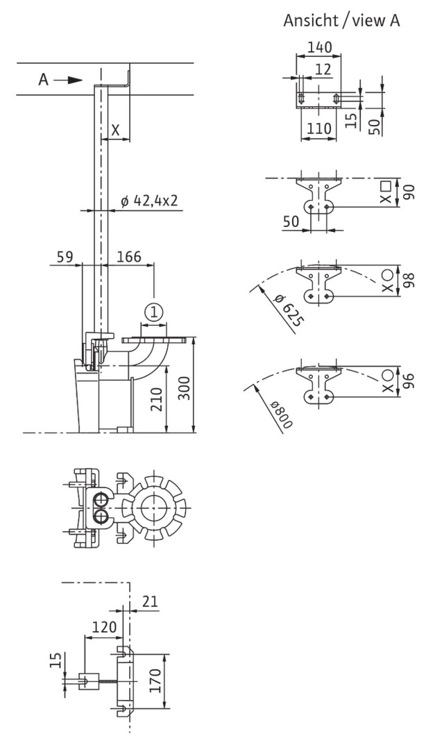 aus EN-GJL-250, mit freiem Durchgang in DN 80, Fußkrümmer mit Pumpenhalterung, Profildichtung, Montage- und Bodenbefestigungszubehör und Doppelrohr-Führungsrohrhalterung (42,4 x 2 mm), ohne Führungsrohre