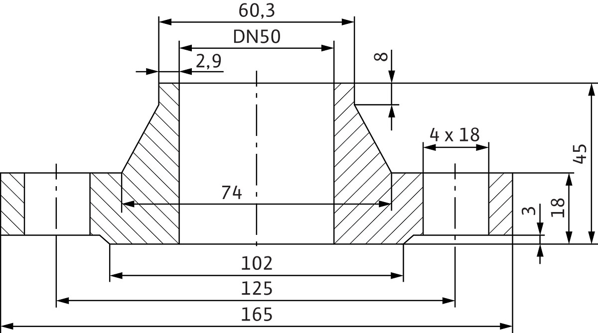 Zwei Vorschweißflansche aus Stahl nach DIN-EN 1092-1 Typ 11, mit Ansatz zum Anschweißen an Rohre, Dichtungen und Schrauben, Muttern für die Flanschverbindungen