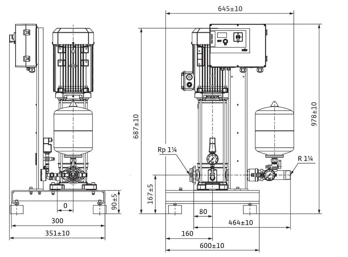 Wilo Hochdruck-Kreiselpumpe Isar MODV1-1CV1-L-608/EC, Rp1¼ (PN 10), R1¼ (PN 16), 2.5kW, 3.09kW