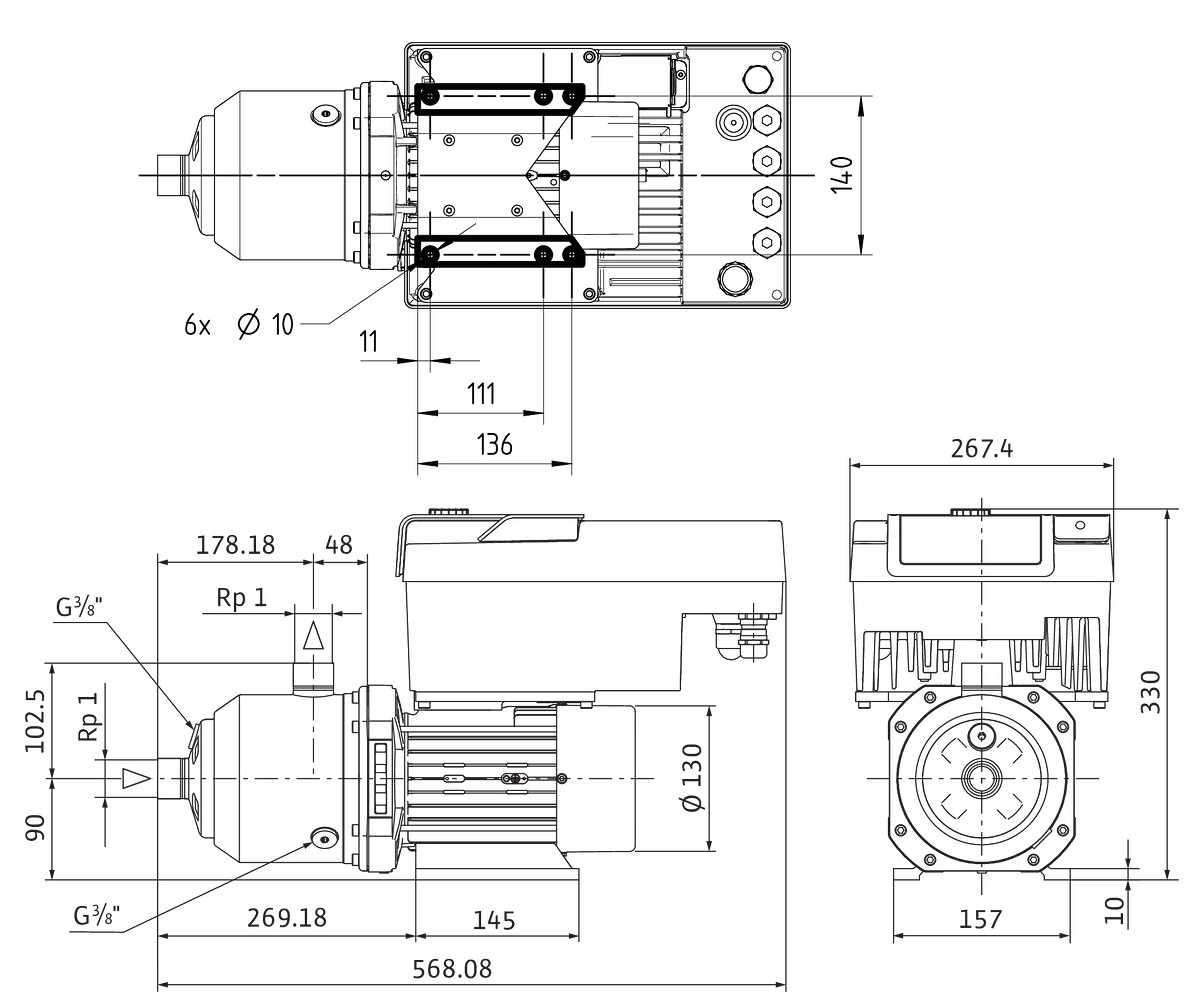 Wilo Hochdruck-Kreiselpumpe MEDANA CH3-LE.207-2/V/3/10T, Rp1 (PN 10), 1.5kW, 1.69kW