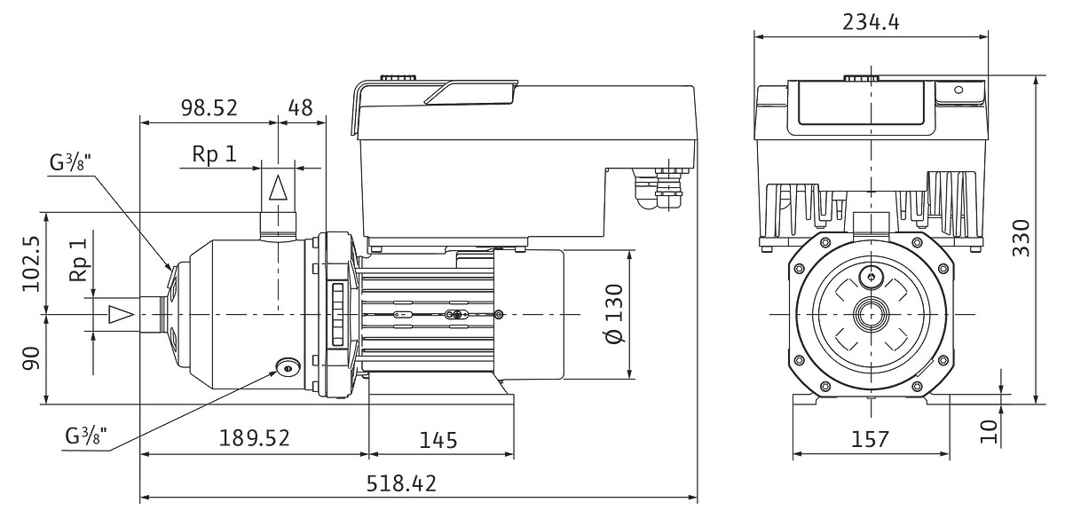 Wilo Hochdruck-Kreiselpumpe MEDANA CH3-LE.403-2/V/3/10T, Rp1 (PN 10), 0.75kW, 0.94kW