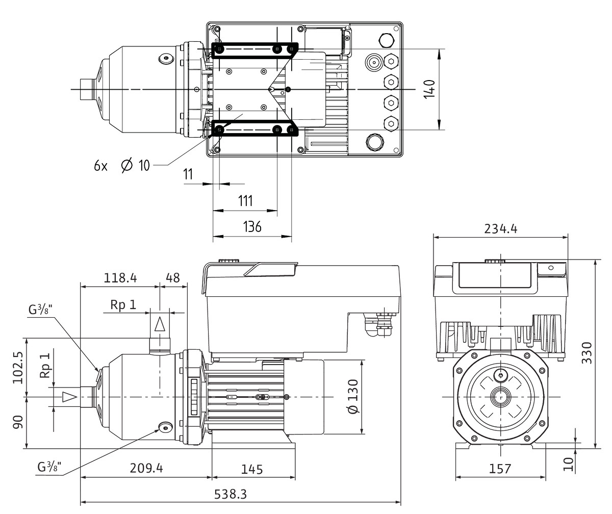 Wilo Hochdruck-Kreiselpumpe MEDANA CH3-LE.404-1/E/3/10T, Rp1 (PN 10), 1.1kW, 1.25kW