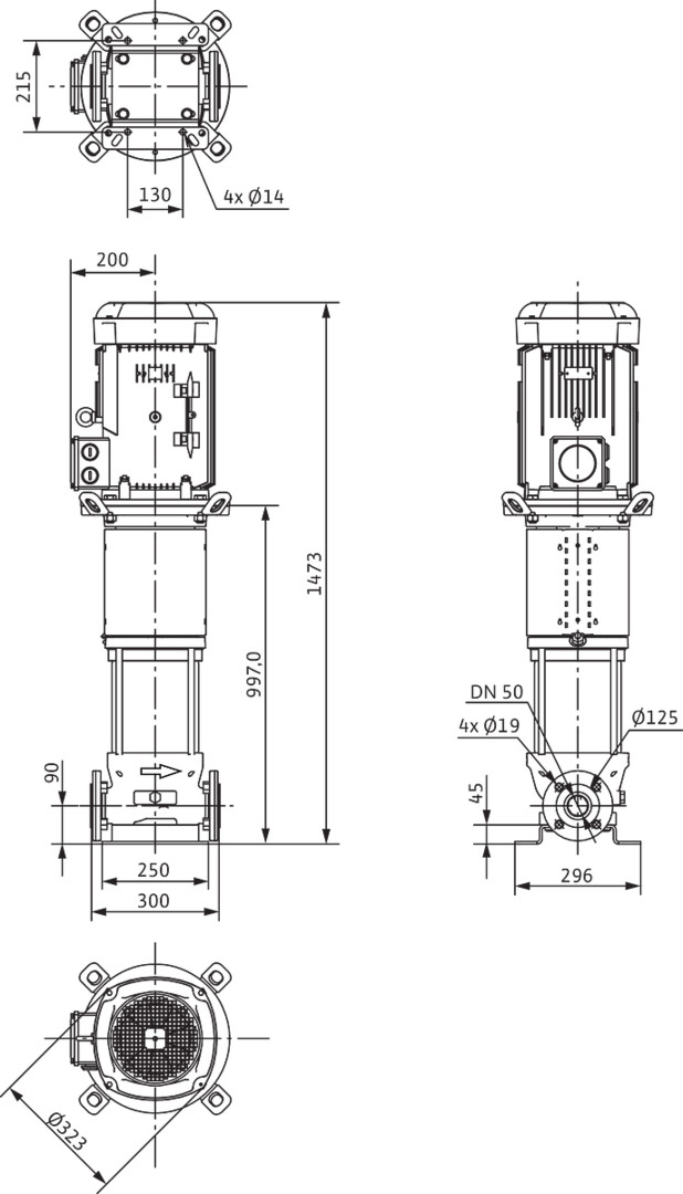 Wilo Hochdruckpumpe Helix V 2205, 7,5 kW, PN 16, DN 50, Kartuschen-Gleitringdichtung W578569