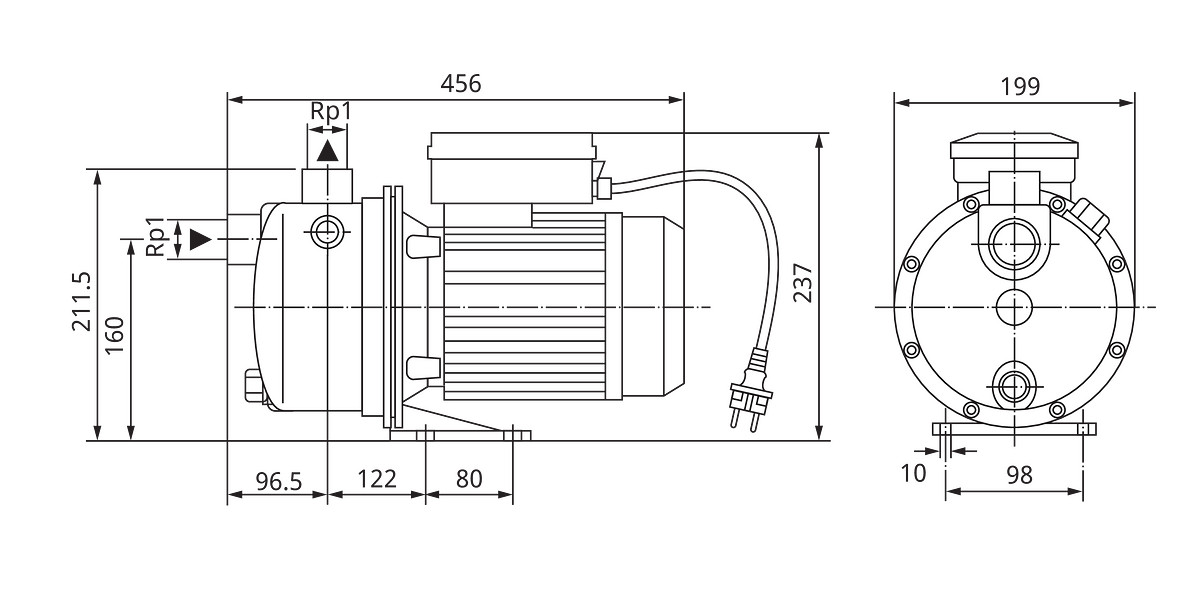 selbstansaugend bis 8 m, Laufrad, Welle und Gehäuse aus AISI 304, Wasserförderung aus Brunnen und Zisternen, Befüllen, Leerpumpen, Umpumpen, Bewässern und Beregnen, als Notpumpe bei Überflutungen