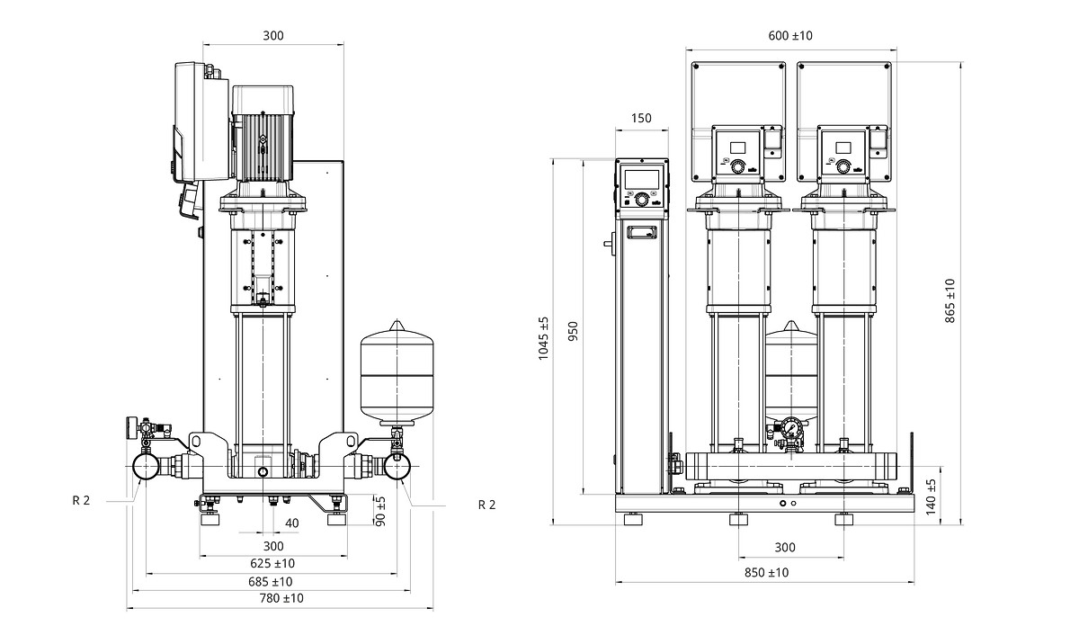 Wilo Mehrpumpenanlage SiBoost2.0 Smart 2HELIX VE604, R2 (PN 10), R2 (PN 16), 1.5kW, 1.69kW