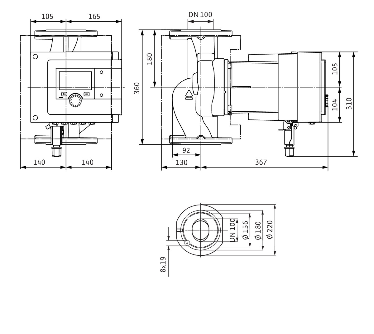 Wilo Nassläufer-Premium-Smart-Pumpe Stratos MAXO 100/0,5-6 PN10-P1, DN100 (PN 10), 0.722kW, 0.83kW