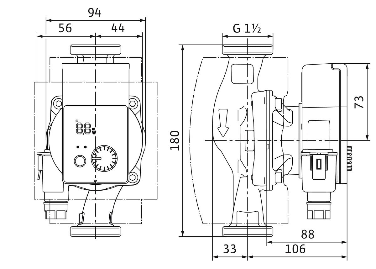 Wilo Nassläufer-Zirkulationspumpe Yonos PICO-Z 25/0,5-6 180, G 1 1/2, 180 mm, 230 V W828411