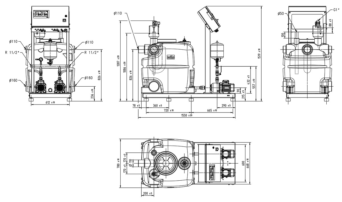 Wilo Regenwasser-Nutzungsanlage RainSystem AF400- 2Medana L404/EC2+1, 0,55 kW, 400 V, 50 Hz