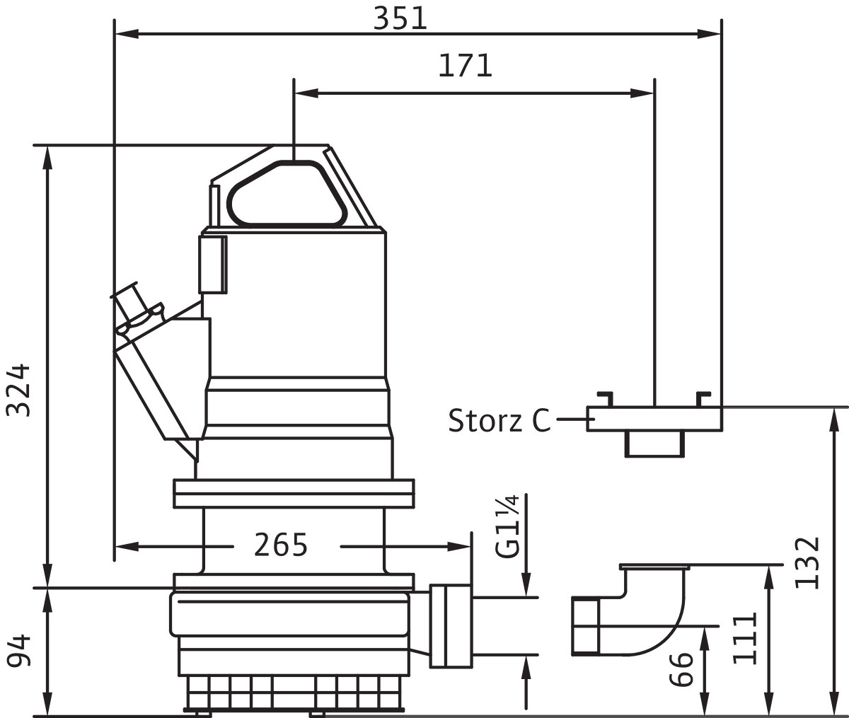 Förderung von Schmutzwasser, Brauchwasser, bis Baugröße 20 ist das Anschlusskabel lösbar und einer Länge von 10 m, ab Baugröße 24 ist das Anschlusskabel fest angeschlossen und das Kabel 20 m lang, das Anschlusskabel ist immer mit einem Stecker ausgestattet, die S-Ausführung ist zusätzlich mit einem Schwimmschalter ausgestattet, die DMS-Ausführung ist mit einem Schaltgerät mit integriertem Motorschutz ausgestattet, Storz-Festkupplung, Einbau- und Betriebsanleitung, Schlürfbetrieb möglich, Dauerbetrieb (S1) geeignet