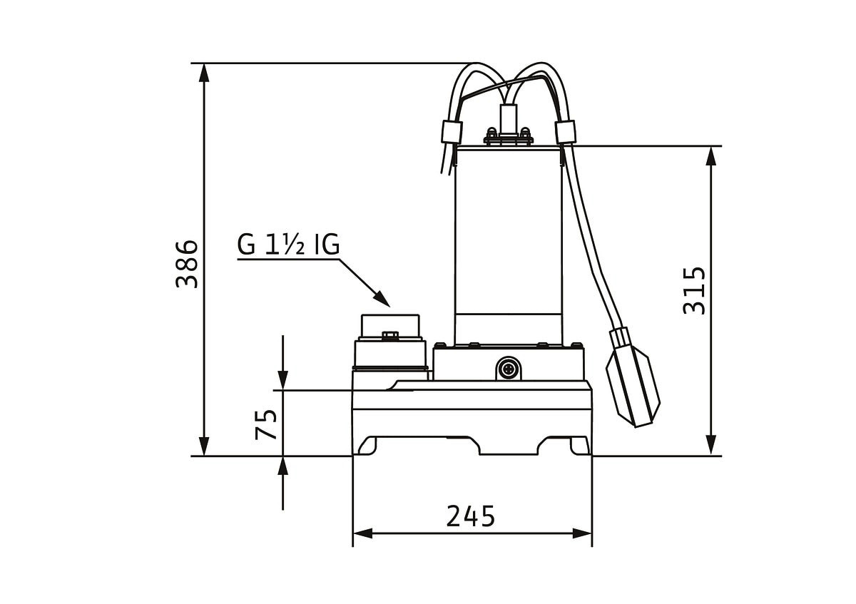 G 1 1/2, 230 V, für die stationäre und transportable Nassaufstellung im intermittierenden Betrieb, zur Förderung in häuslichen Bereichen von Abwasser ohne Fäkalien und Schmutzwasser (mit geringen Mengen Sand und Kies), bestehend aus Pumpe, Rückschlagklappe, vormontiert, Schlauchanschluss, beigelegt, Einbau- und Betriebsanleitung