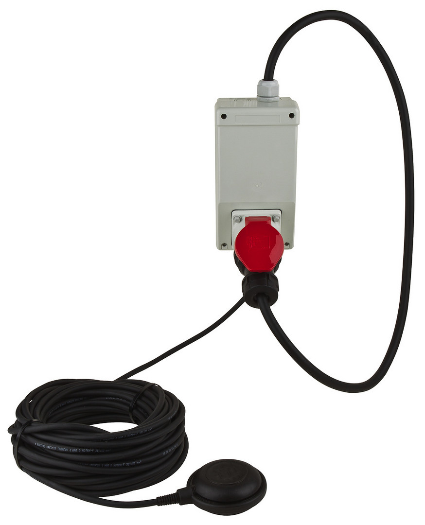 zwischensteckbare Schwimmersteuerung mit CEE-Stecker/-kupplung zur niveauabhängigen Ansteuerung von Drehstromverbrauchern, max. Schaltleistung 3~400 V/16 A/4 kW