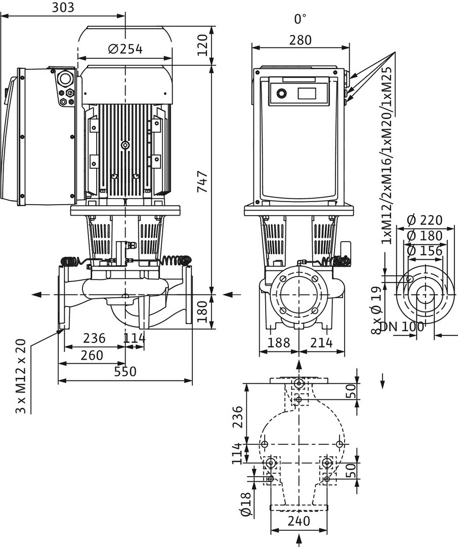 Wilo Trockenläufer-Energiesparpumpe CronoLine IL-E 150/190-5,5/4, 5,5 kW, mit Differenzdruckgeber W828977