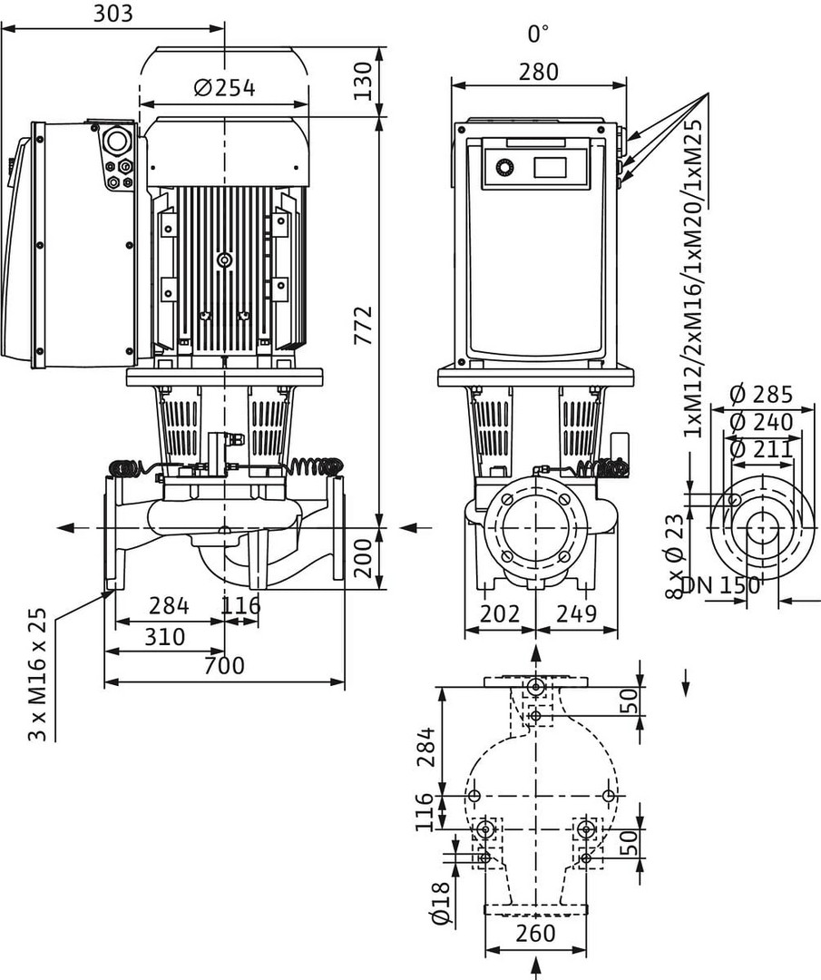 Wilo Trockenläufer-Energiesparpumpe CronoLine IL-E 150/190-5,5/4, 5,5 kW, mit Differenzdruckgeber W828977