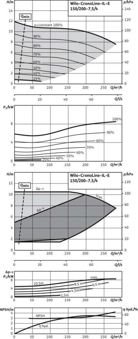 Wilo Trockenläufer-Energiesparpumpe CronoLine IL-E 150/200-7,5/4-R1, 7,5 kW, ohne Differenzdruckgeber