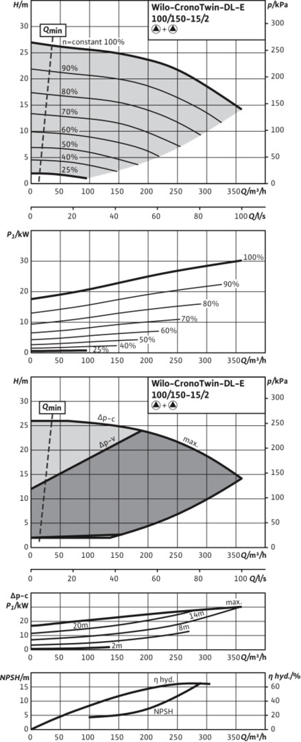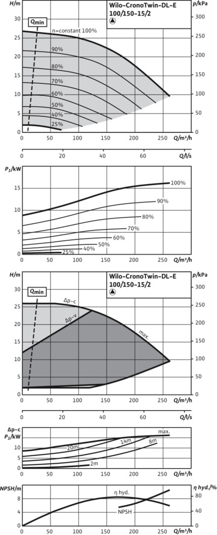 Wilo Trockenläufer-Energiesparpumpe CronoTwin DL-E 100/150-15/2-R1, 15 kW, ohne Differenzdruckgeber
