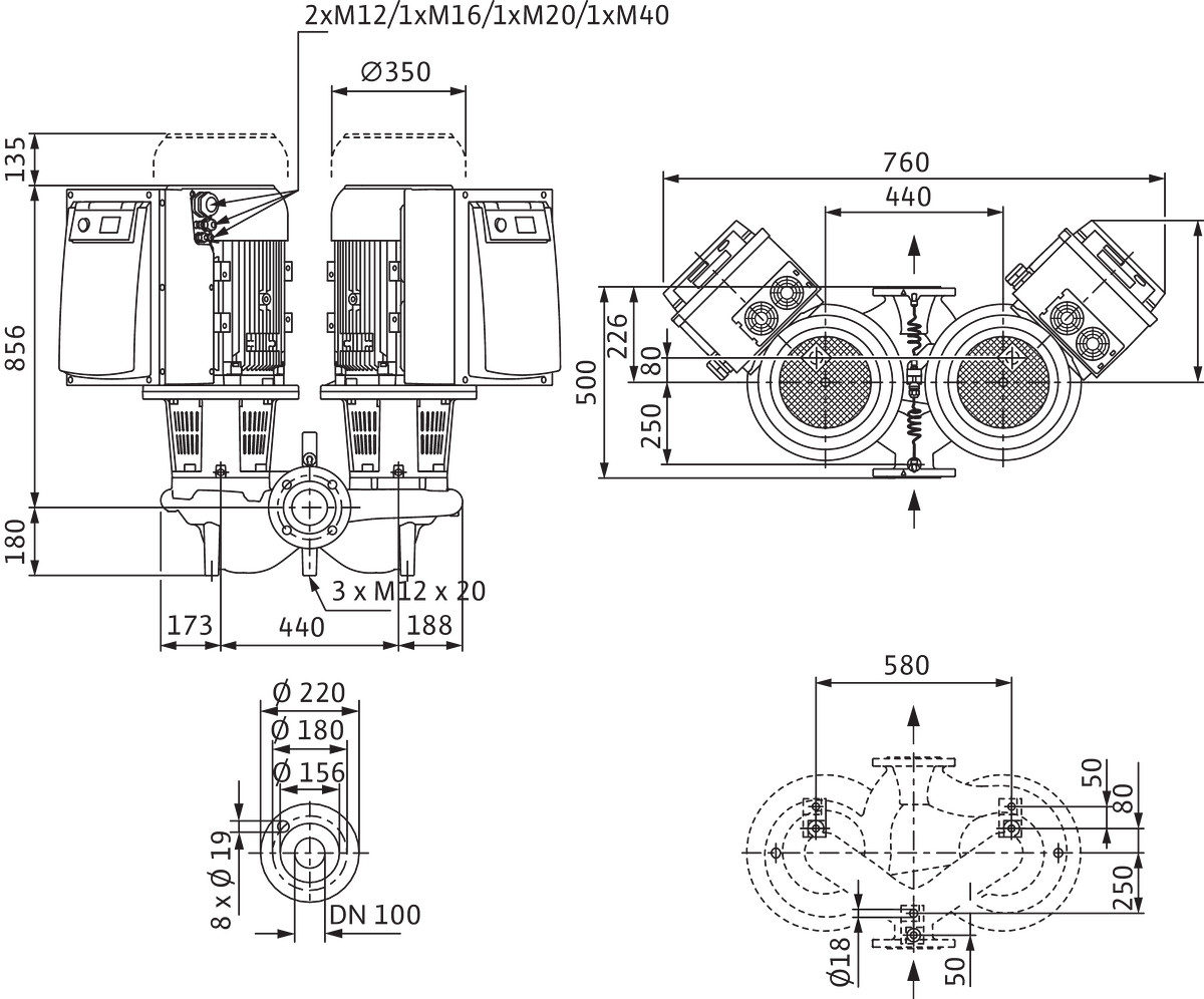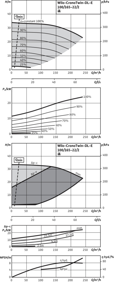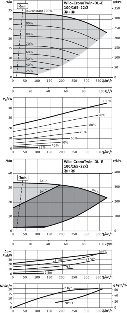 Wilo Trockenläufer-Energiesparpumpe CronoTwin DL-E 100/165-22/2-R1, 22 kW, ohne Differenzdruckgeber