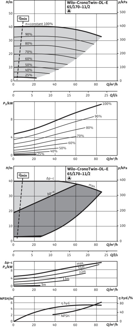Wilo Trockenläufer-Energiesparpumpe CronoTwin DL-E 65/170-1 1/2-R1, 11 kW, ohne Differenzdruckgeber