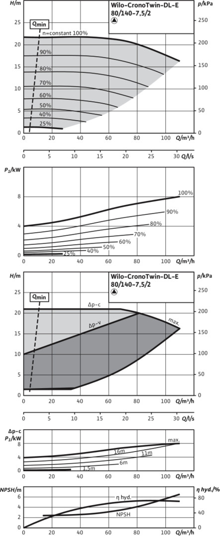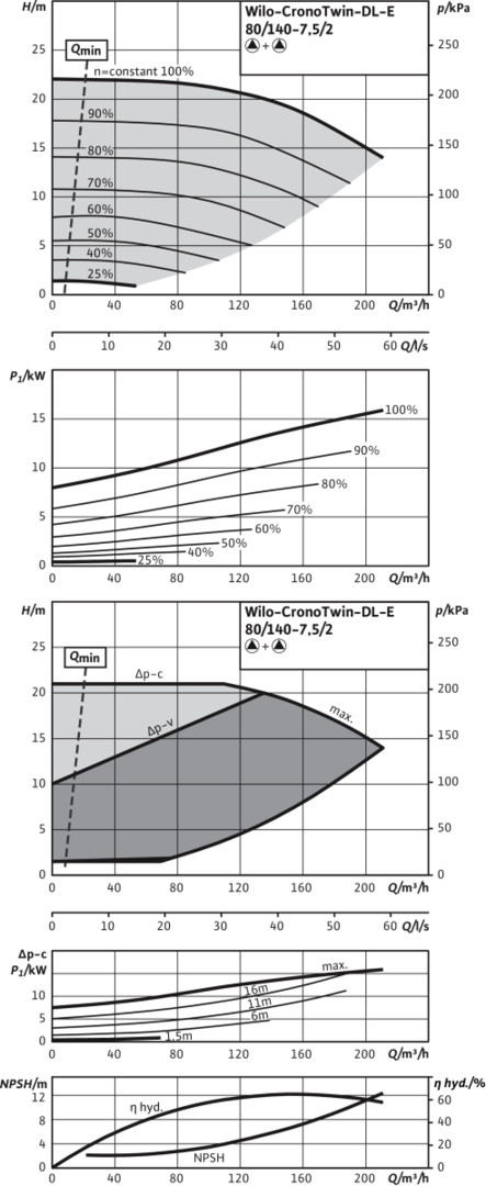 Wilo Trockenläufer-Energiesparpumpe CronoTwin DL-E 80/140-7,5/2 R1, 7,5 kW, ohne Differenzdruckgeber