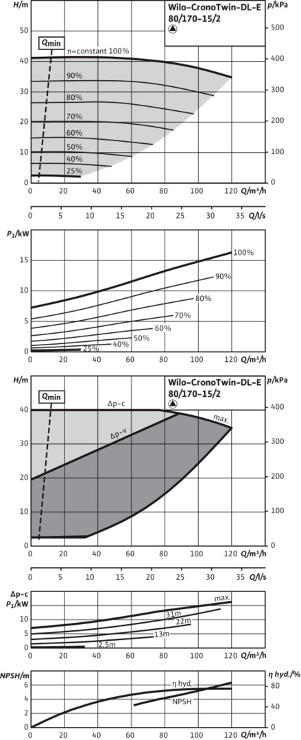Wilo Trockenläufer-Energiesparpumpe CronoTwin DL-E 80/170-15/2-R1, 15 kW, ohne Differenzdruckgeber