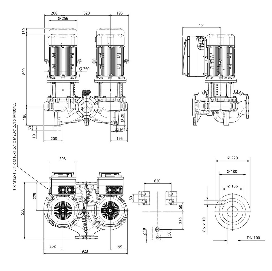 Wilo Trockenläufer-Hocheffizienz-Doppel Stratos GIGA-D 100/2-23/11, DN100 (PN 16), 10.6kW, 11.00kW