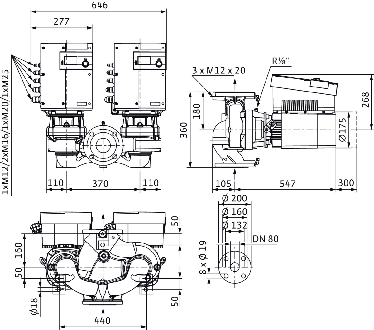 Wilo Trockenläufer-Hocheffizienz-Doppelpumpe Stratos GIGA-D 80/1-32/4,1-R1, ohne Differenzdruckgeber
