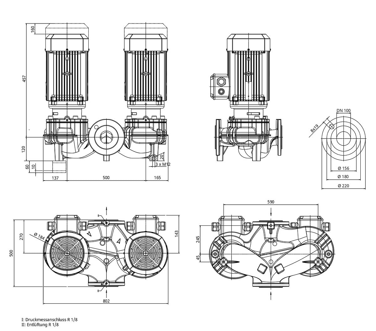 | Dimension | DPL 100/135-1,1/4, 1,1 kW |