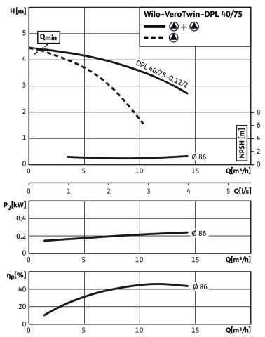 Wilo Trockenläufer-Standarddoppelpumpe VeroTwin DPL 40/75-0,12/2, 0,12 kW, 2-polig