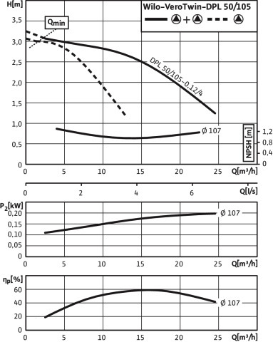 Wilo Trockenläufer-Standarddoppelpumpe VeroTwin DPL 50/105-0,12/4, 0,12 kW, 4-polig