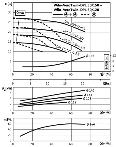 Wilo Trockenläufer-Standarddoppelpumpe VeroTwin DPL 32/95-0,55/2, 0,55 kW, 2-polig W828899