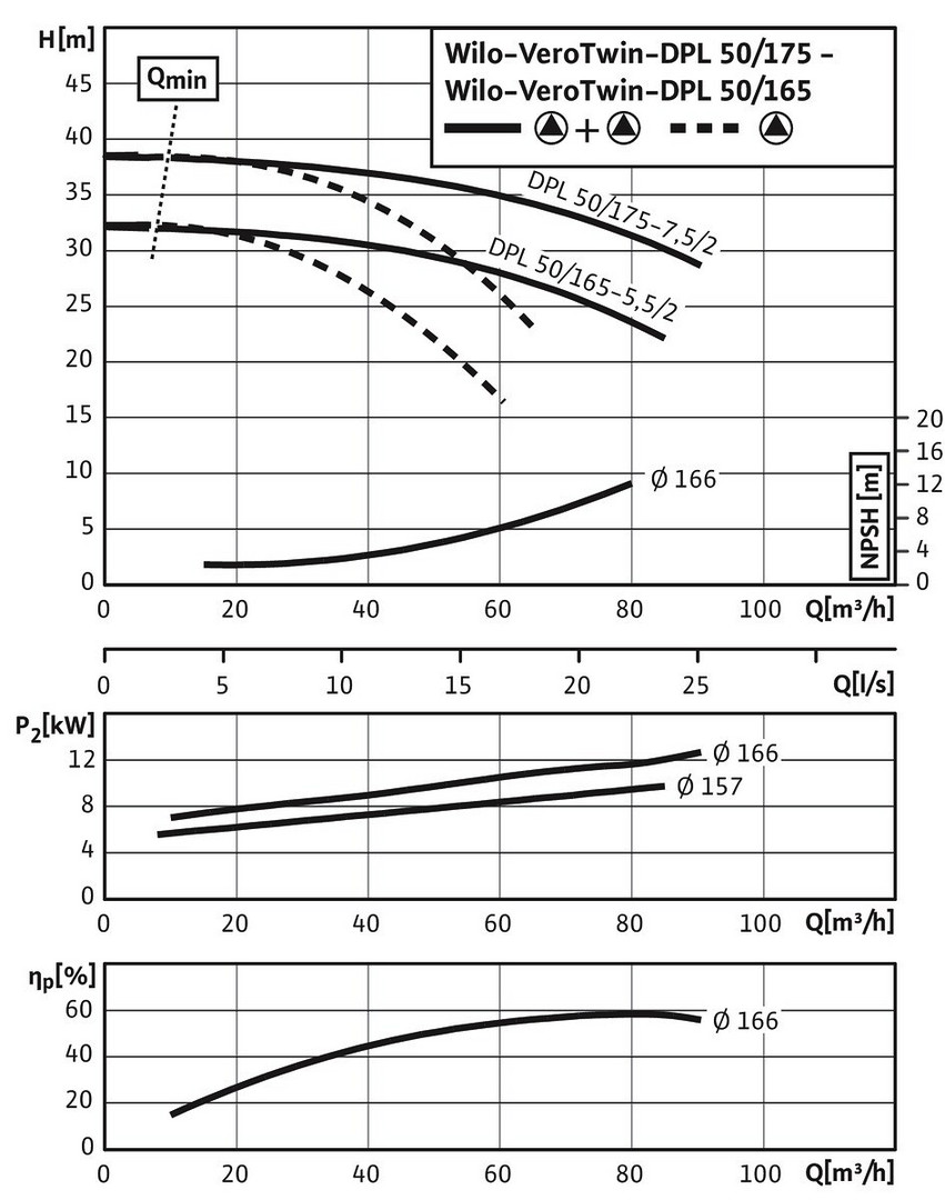 Wilo Trockenläufer-Standarddoppelpumpe VeroTwin DPL 50/165-5,5/2, 5,5 kW, 2-polig