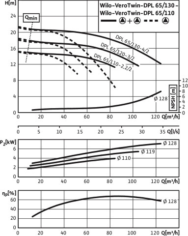 Wilo Trockenläufer-Standarddoppelpumpe VeroTwin DPL 32/95-0,55/2, 0,55 kW, 2-polig W828899