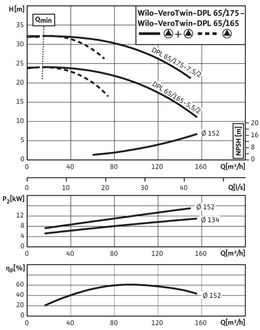 Wilo Trockenläufer-Standarddoppelpumpe VeroTwin DPL 65/175-7,5/2, 7,5 kW, 2-polig
