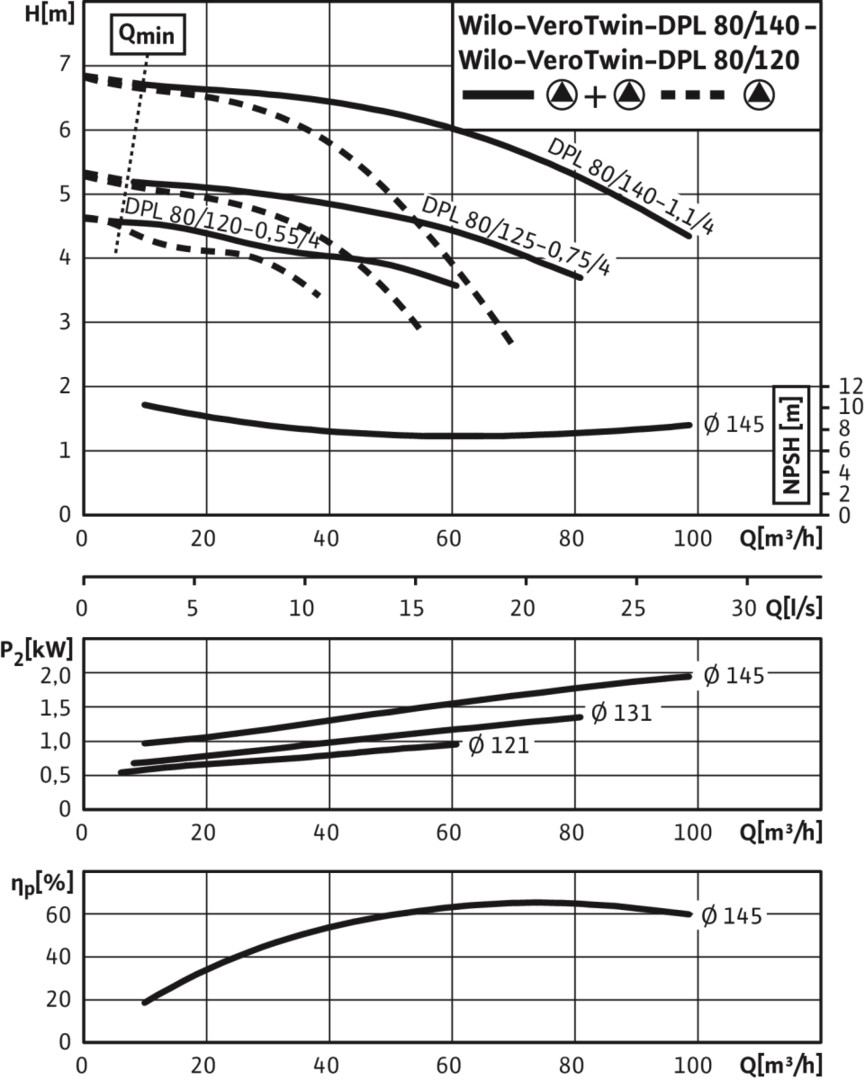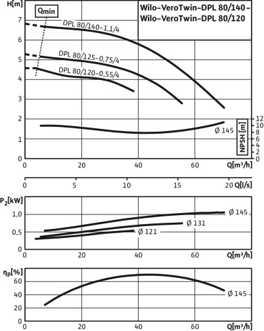 Wilo Trockenläufer-Standarddoppelpumpe VeroTwin DPL 80/120-0,55/4, 0,55 kW, 4-polig