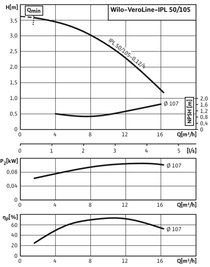 Wilo Trockenläufer-Standardpumpe VeroLine IPL 50/105-0,12/4, 0,12 kW, 4-polig