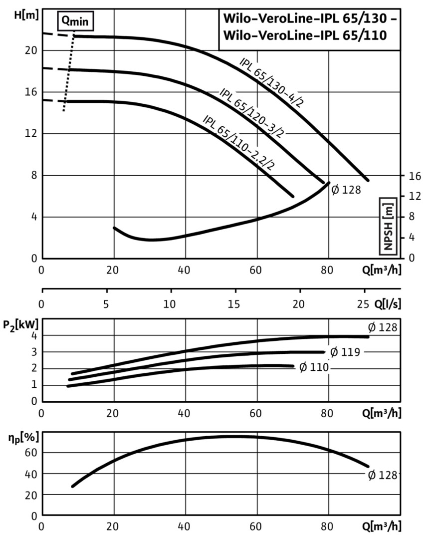Wilo Trockenläufer-Standardpumpe VeroLine IPL 65/110-2,2/2, DN 65, 2,2 kW, 2-polig W828791