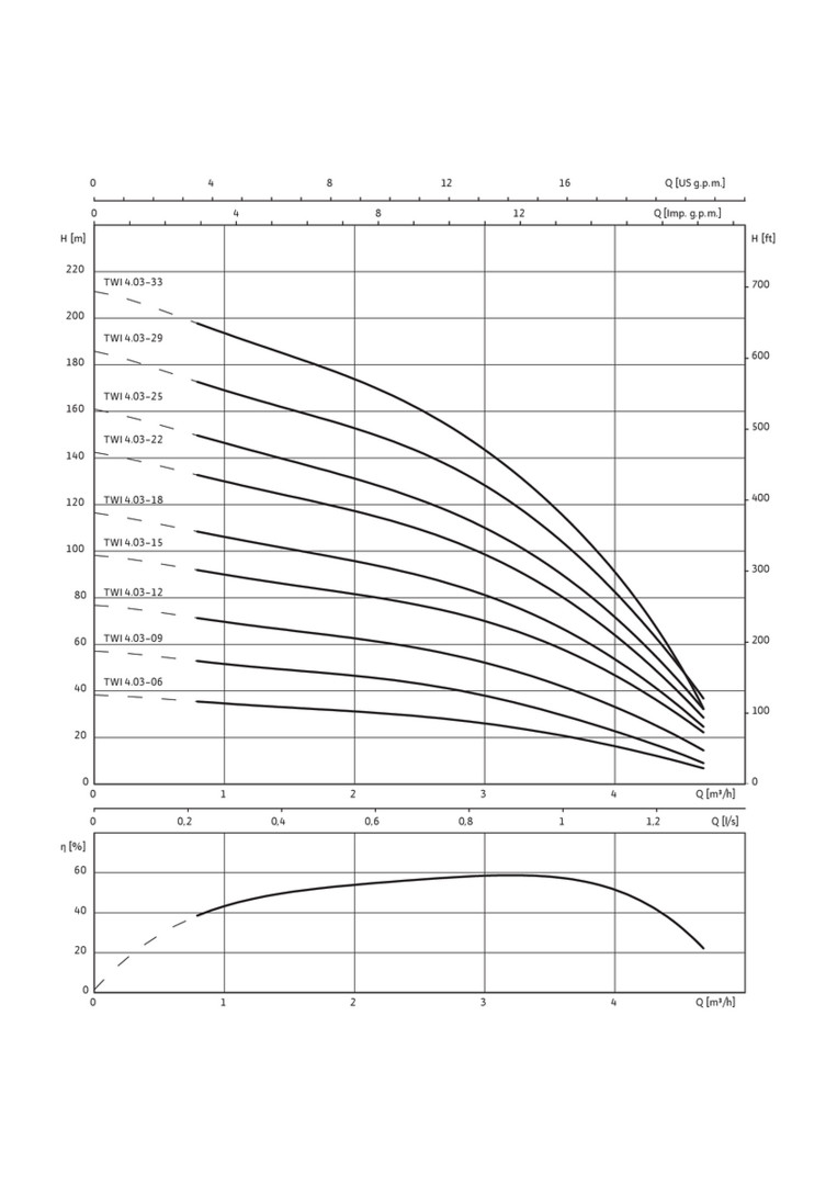 Wilo Unterwassermotor-Pumpe Sub TWI 4.03-09-EM-D, Rp1¼ (PN 10/16/25/40), 0.75kW, 1.27kW