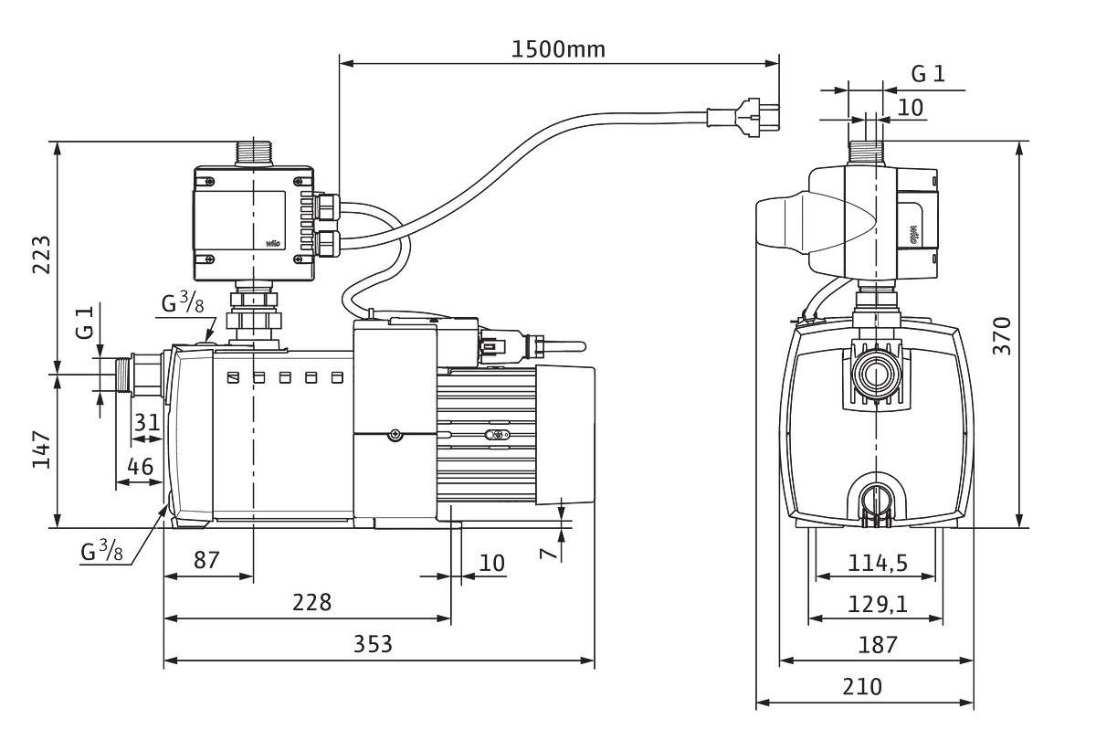 mit automatischem Pumpensteuersystem, zur Wasserversorgung (Trinkwasserzulassung nach ACS), Beregnung, Bewässerung und Berieselung, Regenwassernutzung, mit Pumpe, Pumpensteuerung Wilo-HiControl 1, 1x Kunststoffverbinder mit Dichtung für den manuellen Anschluss an das Zulaufrohr, Wilo-Connector (elektrischer Schnellverbinder), Einbau- und Betriebsanleitung