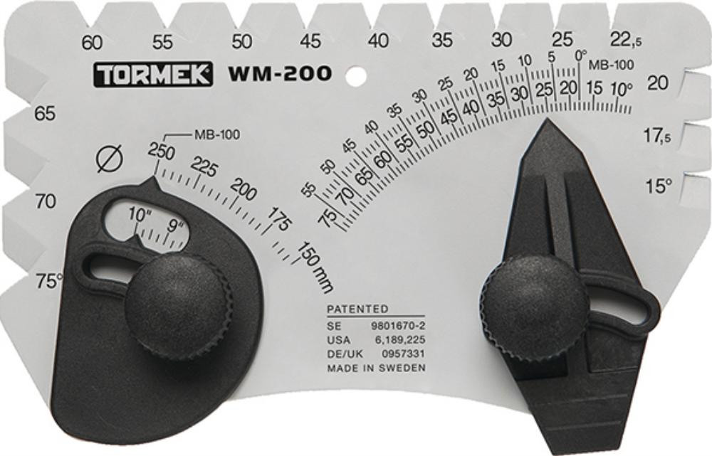 • Für Schneidenwinkel vor dem Schleifen einstellen oder vorhandenen Winkel eines Werkzeugs messen