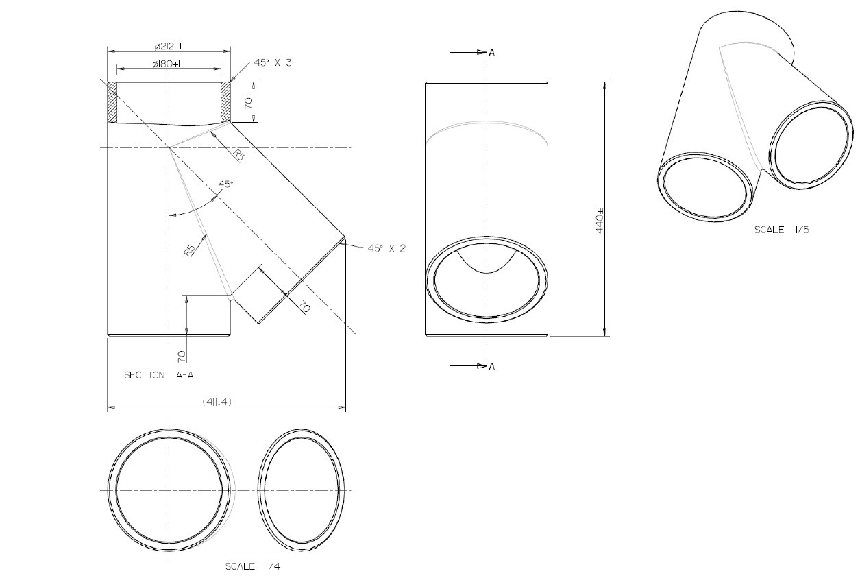 Wolf ISO-Rohr-Y-Stück 45Grad, DN 180, für CWL-2-400