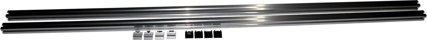 bestehend aus Montageschiene(n), Kreuzverbindern und schwarzen Endkappen