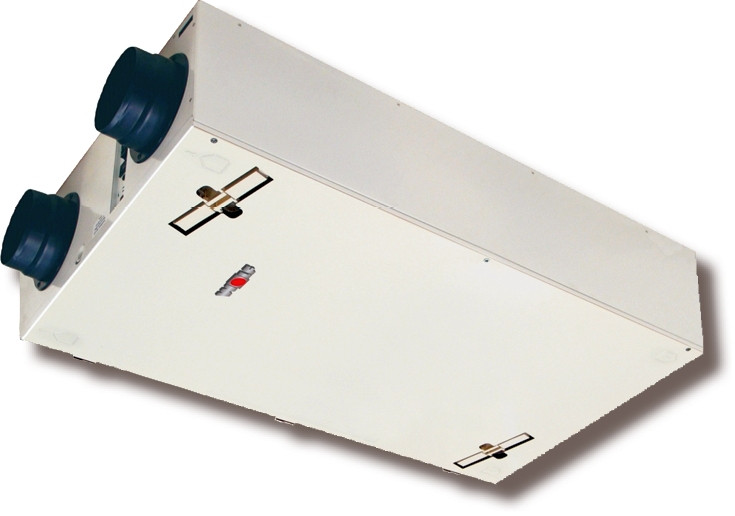 Zu- und Abluftgerät mit Wärmerückgewinnung für Wohnungen, Ein-/Mehrfamilienhäuser, pollenfreie, frische Luft lüften bei geschlossenen Fenstern, ohne Straßenlärm (nicht nur für Allergiker), herausnehmbarer Kunststoff-Kreuz-Gegenstromplattenwärmetauscher, Wärmerückgewinnunggrad bis zu 95%, Bypass serienmäßig, je ein Ventilator für Zu- und Abluft, stufenlos regelbar, Energieverbrauch durch Gleichstromventilatoren, die Constant Flow Ventilatoren halten bei jeder gewählten Ventilatordrehzahl die Luftmenge konstant, hierdurch wird ein dauerhaft hoher Wirkungsgrad erreicht und das Einregulieren auf ein Minimum beschränkt, die automatische Frostschutzregelung bietet optimalen Schutz gegen Einfrieren Gerät steckerfertig verdrahtet, Filterwechselanzeige am Schalter, Anschlussmöglichkeit für Nachheizregister, Luftqualitäts- CO2- und Feuchtefühler, Wärme- und schallgedämmte Verkleidung aus Stahlblech, pulverbeschichtet weiß RAL 9010, Revisionstür: silber ähnlich RAL 9006, Innenauskleidung aus temperaturbeständigem Kunststoff, nicht hygroskopisch, Filterwechsel ohne Werkzeug möglich, Vorheizregister integriert, automatische Filterüberwachung mit Filterwechselanzeige am Gerät und am 3-Stufen-Schalter, Mikroprozessor-Regelung mit Display zur Einstellung und Anzeige der einzelnen Regelungsfunktionen, Sollwerteinstellung des Volumenstroms für Zu- und Abluft Ventilatoren Ein/Aus, Druckausgleich bzw. Druckungleichgewicht programmierbar