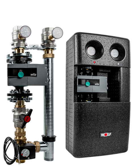 zur Verbindung eines Mischerkreises mit einem Heizkessel, Nenn-Leistungsbereich bis 185kW bestehend aus: Hocheffizienzpumpe WILO-Stratos MAXO (EEI 0,19), max. Förderhöhe 9,4 m, elektronisch geregelt, Kugelhähnen mit Thermometer mit Entleerungs-/Spülventil, Rücklaufkugelhahn mit integriertem Sperrventil, Pumpenkugelhahn mit Entleerungs-/Spülventil, 3-Wege-Messing-Mischer mit Stellmotor WILO-Stratos MAXO 40/05-8 PN6/10-R7: integrierte elektronische Leistungsregelung, Wärme- und Kältemengenmessung, serienmäßige analoge Meldung, digitaler Ein- und Ausgang, drahtloser Datenaustausch und Fernbedienung über Bluetooth