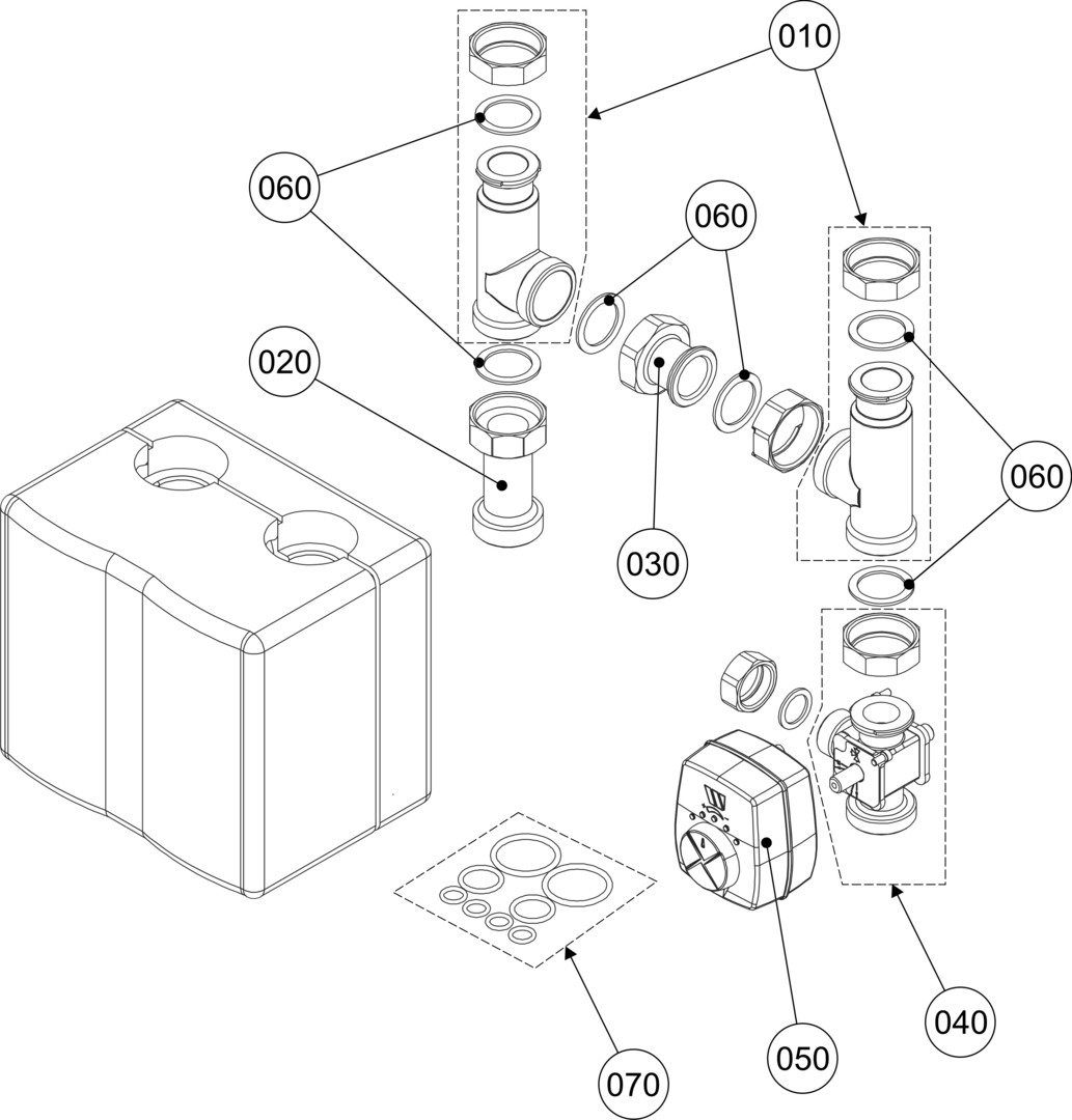 für Gastherme und Gasbrennwert-Zentralen ohne hydraulische Weiche, zur Regelung der Vorlauftemperatur (Fußbodenheizung- Wandheizung), Stutzenabstand 125 mm, bestehend aus Mischer, Mischermotor und Bypassverrohrung, Design-Wärmedämmschalen aus EPP, Anschlüsse Eintritt 1 1/2" AG flachdichtend, Austritt 1 1/2" Übergangsverschraubung flachdichtend, Bauhöhe 232 mm